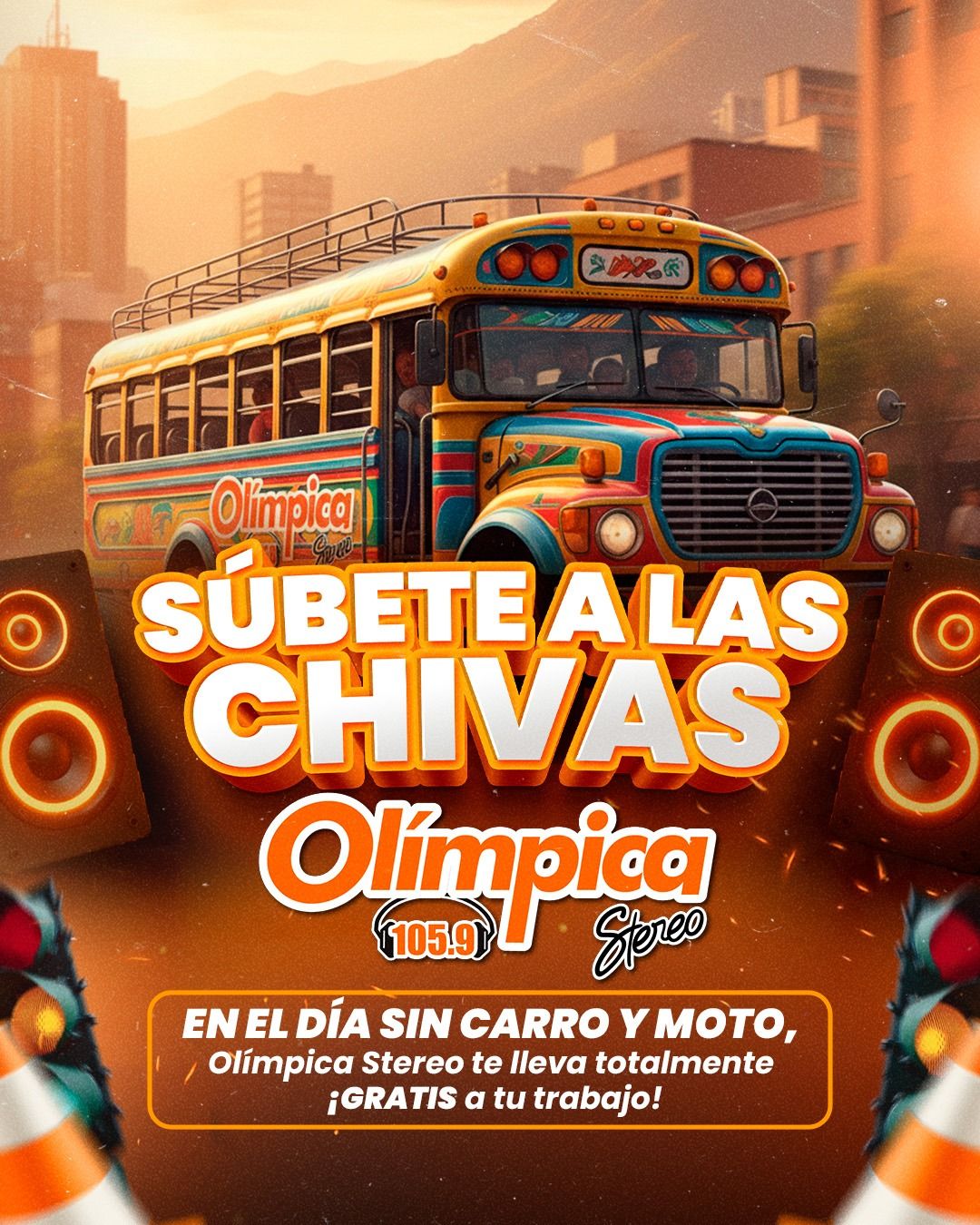Por tal motivo, en una jornada diseñada para fomentar la movilidad sostenible, Olímpica Stereo Bogotá se toma las calles con una logística sin precedentes: chivas rumberas, pagos de pasajes en TransMilenio y shows musicales para acompañar a los bogotanos en sus recorridos alternativos.
