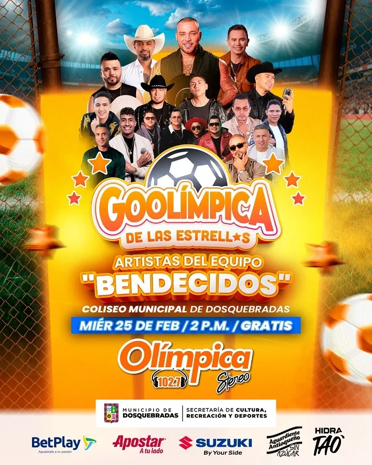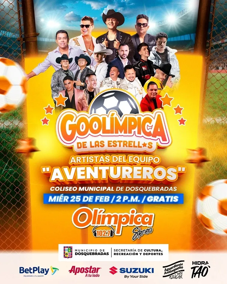 La ciudad de Dosquebradas será escenario de una nueva edición de Goolímpica, el tradicional Partido de las Estrellas que reunirá a reconocidos artistas de la música colombiana en una jornada deportiva pensada para el disfrute del público. El evento se realizará el próximo 25 de febrero en el Coliseo Cubierto de Dosquebradas y contará con entrada gratuita a partir de las 2:00 de la tarde.