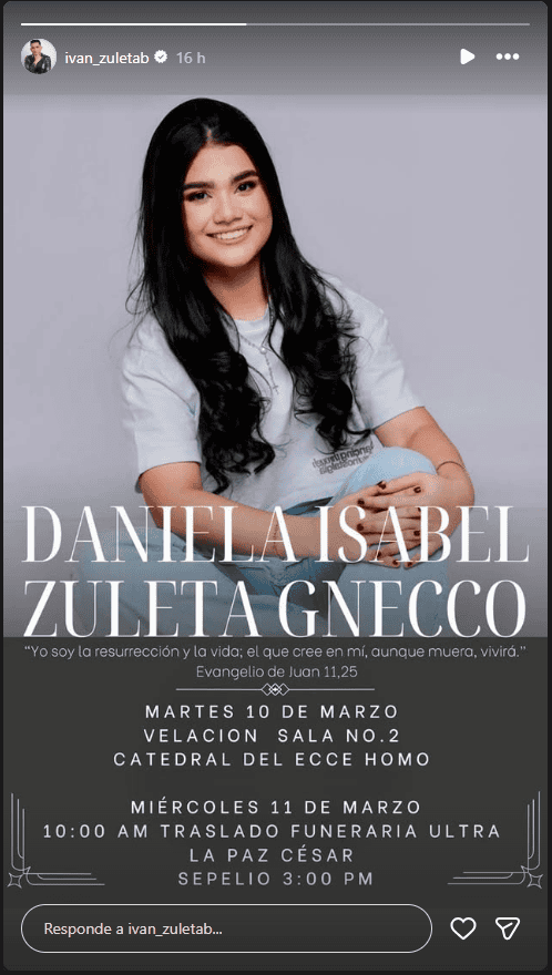 Valledupar, cuna del vallenato, se encuentra sumida en una profunda tristeza tras la inesperada partida de Daniela Isabel Zuleta Gnecco.