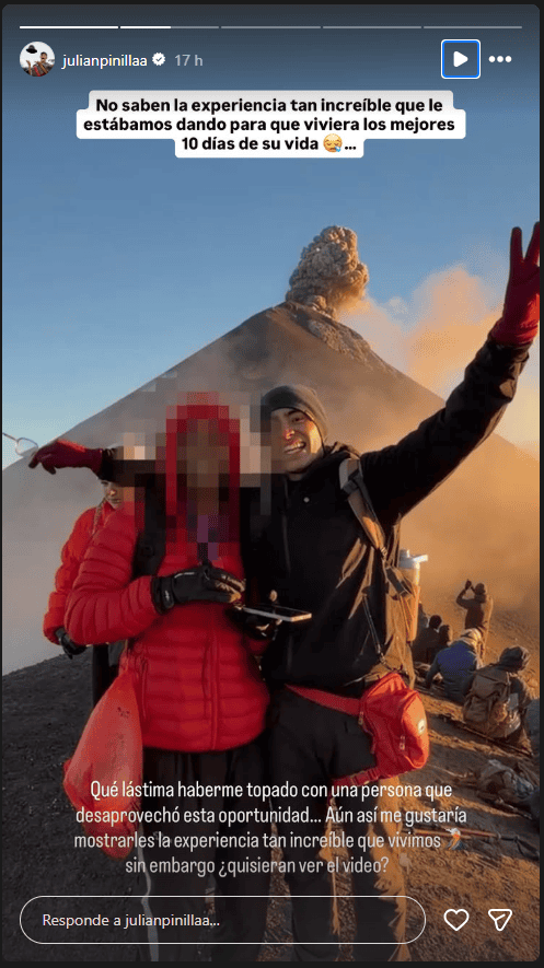 El viaje, que tenía como escenario los paisajes de Guatemala, se tornó sombrío debido al comportamiento del invitado, un hombre que se desempeñaba como reciclador en Chía, Cundinamarca, y al que Julián había seleccionado para disfrutar de diez días de ensueño.