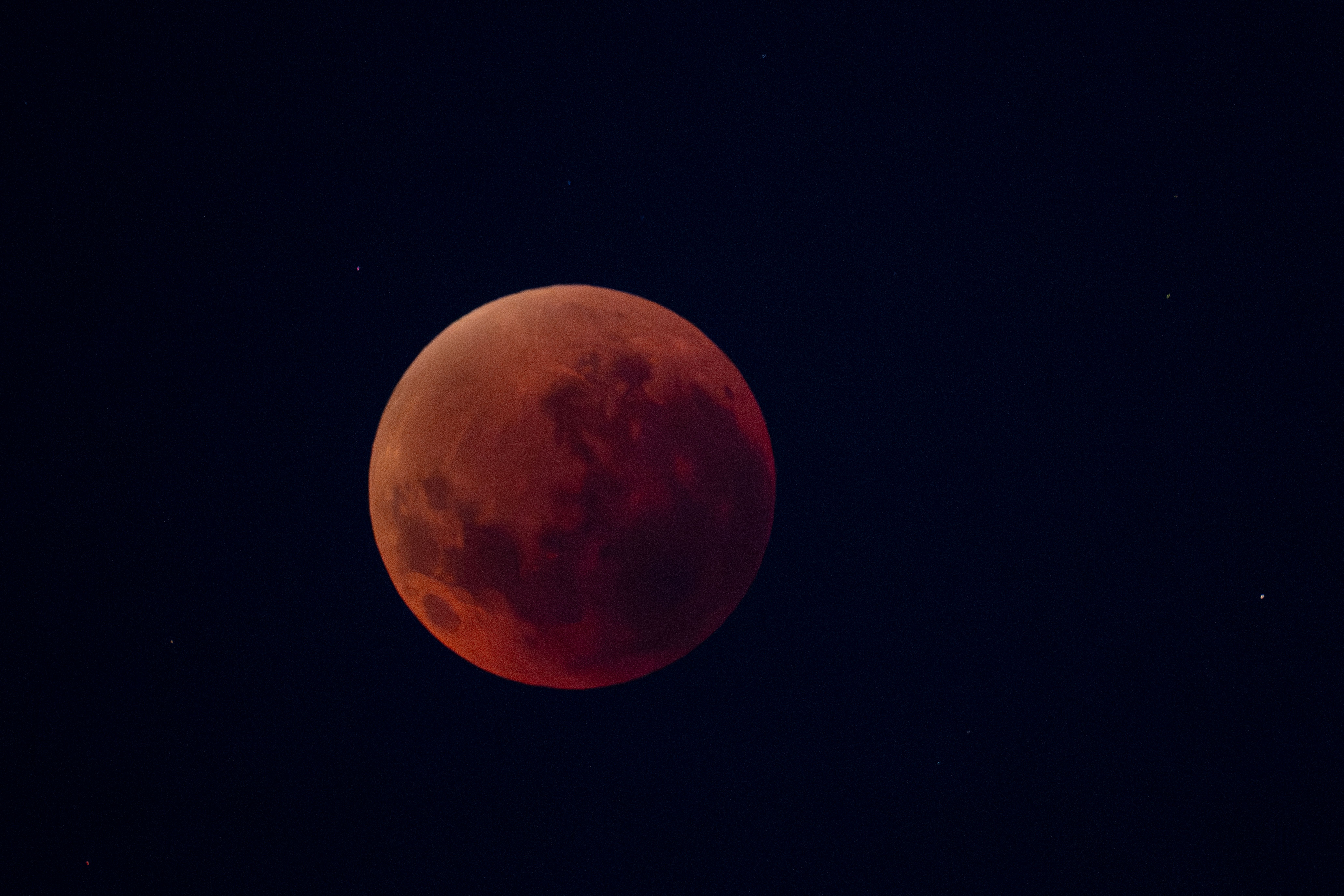 Un eclipse lunar ocurre cuando la Tierra proyecta una sombra gigantesca sobre la superficie lunar. Al estar alineados el Sol, nuestro planeta y la Luna, siempre en fase de Luna llena, la atmósfera terrestre filtra la luz solar, dejando pasar solo las longitudes de onda más largas, es decir rojas y naranjas.
