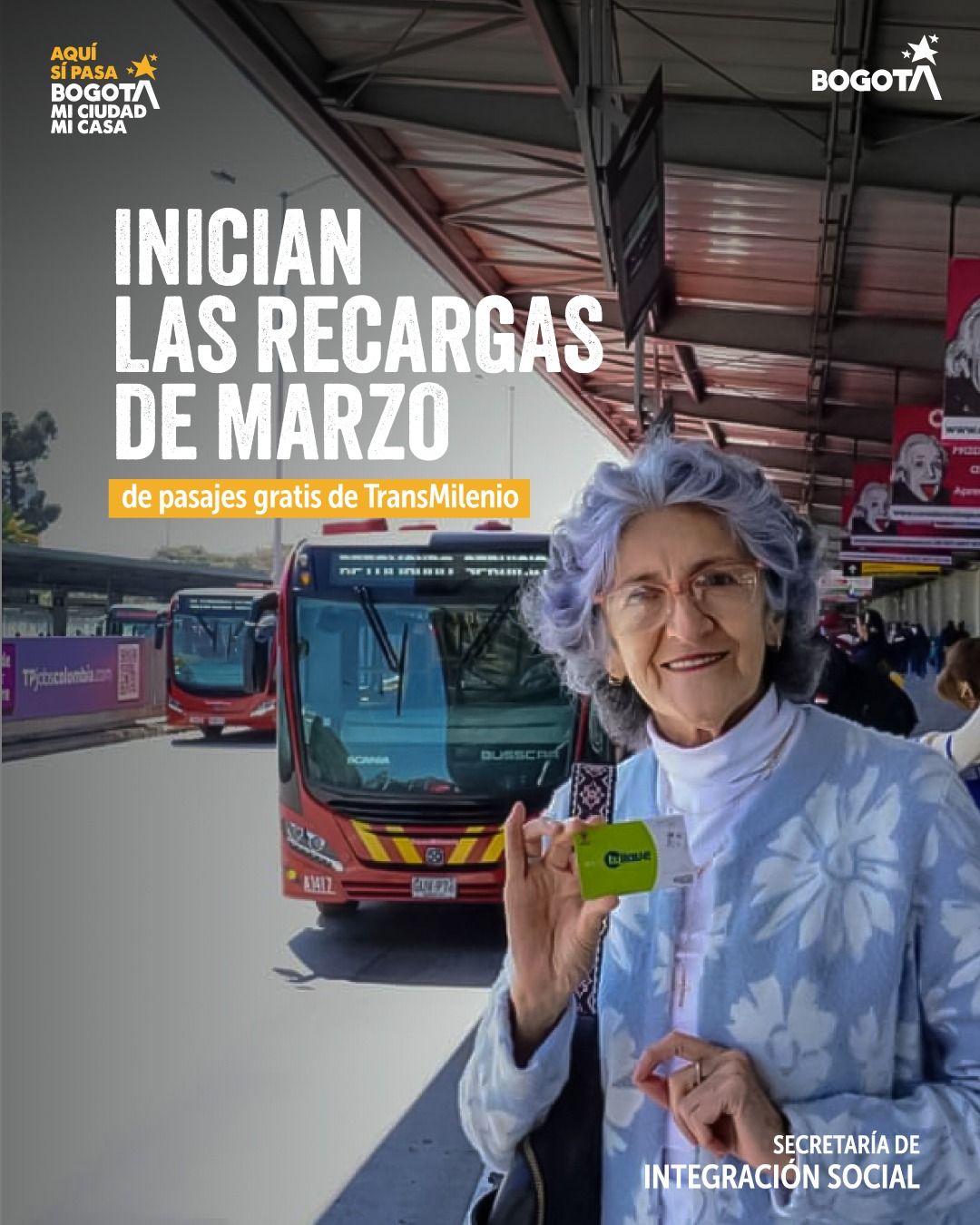 La capital colombiana da un paso firme en su estrategia de protección social con el inicio de las recargas de pasajes gratuitos para el sistema TransMilenio correspondientes al mes de marzo.