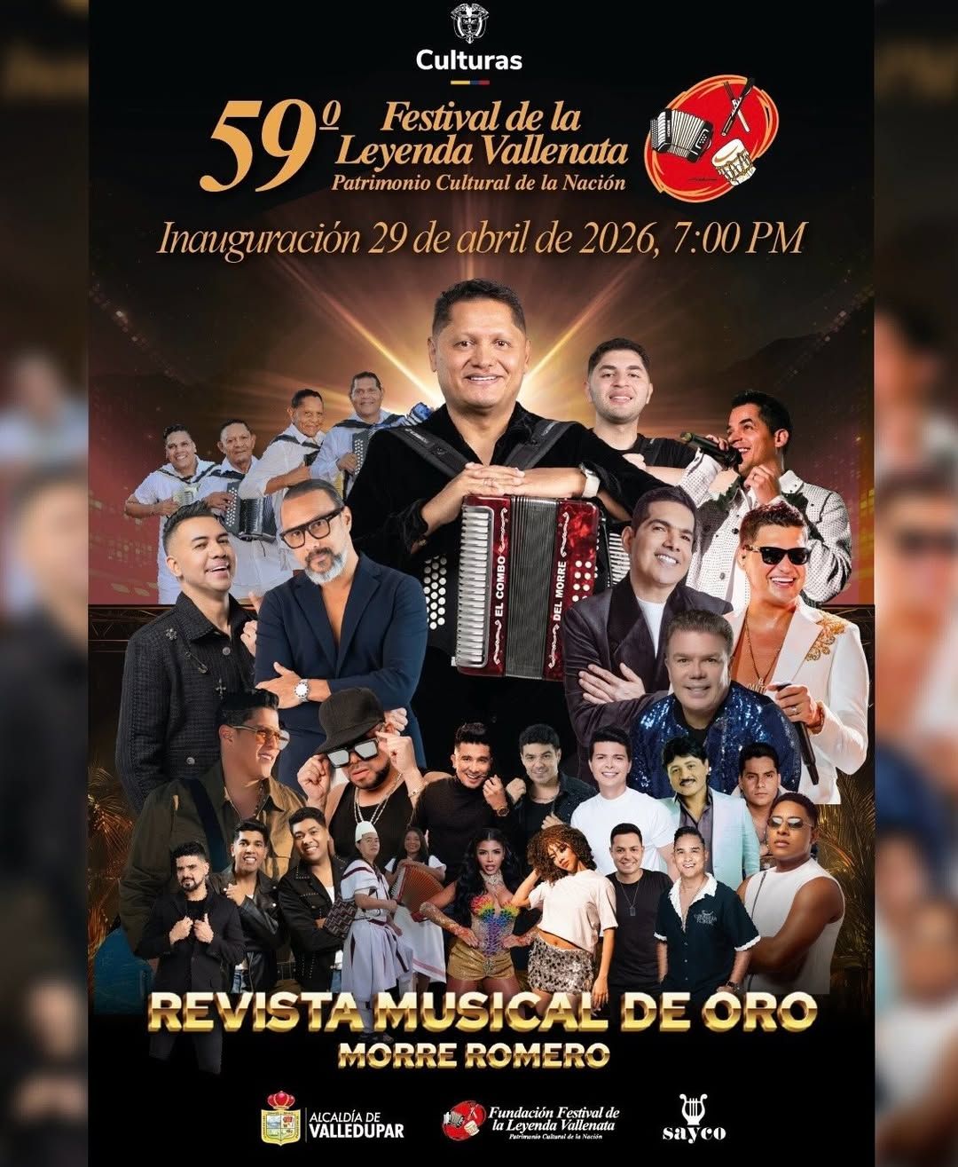 El Festival de la Leyenda Vallenata 2026 rinde tributo a los 50 años del Binomio de Oro de América, pioneros del vallenato romántico. La agenda, que ya calienta motores desde el sábado 25 de abril, integra la esencia competitiva de los acordeoneros infantiles, juveniles y profesionales, quienes buscan el codiciado título de Rey Vallenato.