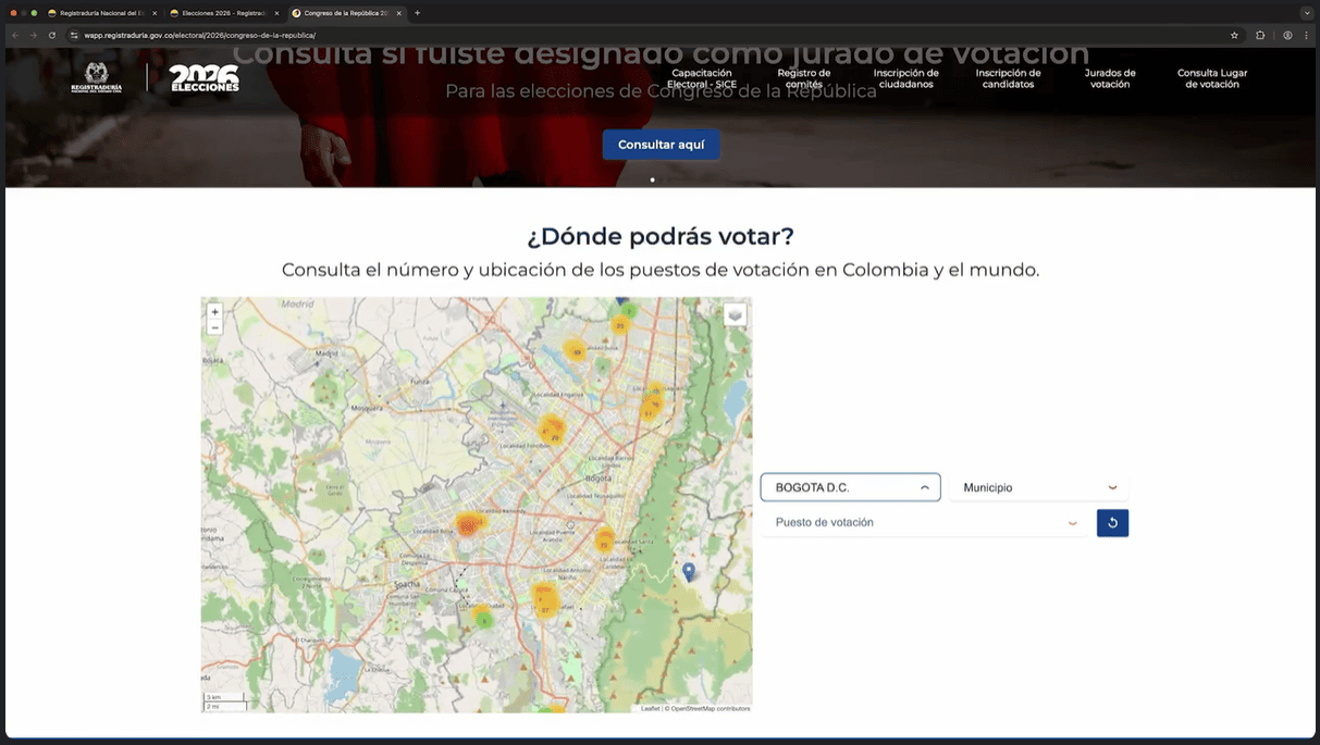 A pocas semanas de las elecciones legislativas, la entidad presentó oficialmente una innovadora herramienta de georreferenciación que permite a los ciudadanos consultar la ubicación exacta de sus puestos de votación, tanto en el territorio nacional como en el extranjero.